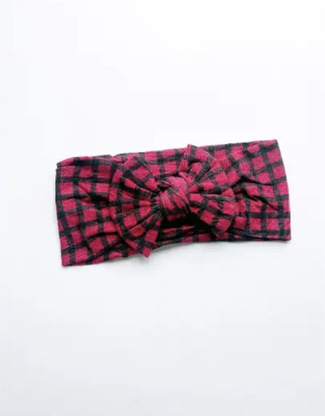 Red Buffalo Grid Plaid Nylon Baby Headband